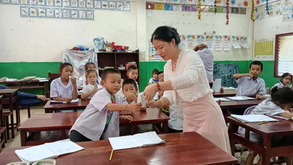 说起自己的工作,耿娇总是滔滔不绝:“从普院的语言实验室到老挝的真实讲台,转变猝不及防却又充满力量。”在开展中文教学工作过程中,耿娇总是能发现惊喜,而从学生到教师的转变更是让她迅速得到成长,不断收获友谊,传承中华优秀传统文化。“初到老挝,虽有老挝语基础,但教学场景的适配仍需磨合,好在普院四年培养的语言应用能力和跨文化沟通意识,成了我最坚实的后盾。我把普洱茶文化与老挝茶文化对比融入课堂,用茶叶叶脉讲解“叶”字的演变;将云南少数民族与老挝民族的传统图案结合汉字笔画,让学生在动手实践中感受中文之美。”