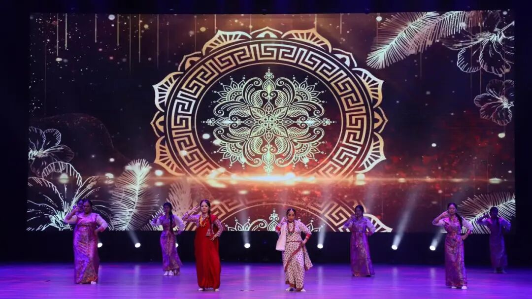 云南农业大学的舞蹈《我最珍贵的》,7个来自不同国家的学生用尼泊尔传统舞蹈,展示生命与传承之美。
