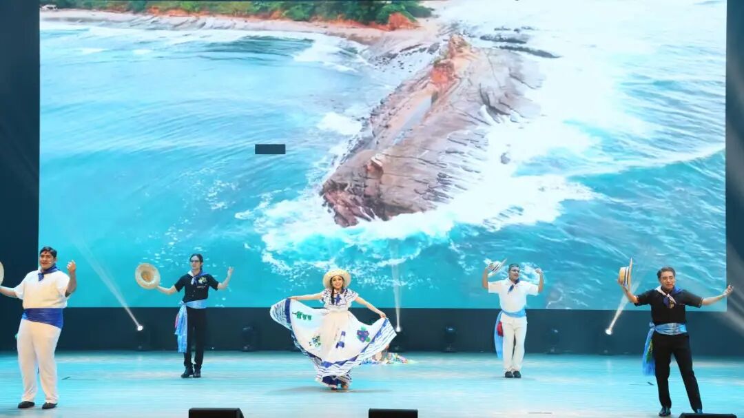 楚雄师范学院尼加拉瓜留学生用《我亲爱的尼加拉瓜》歌舞,展现丰收喜悦和对和平与美好生活的深切向往。
