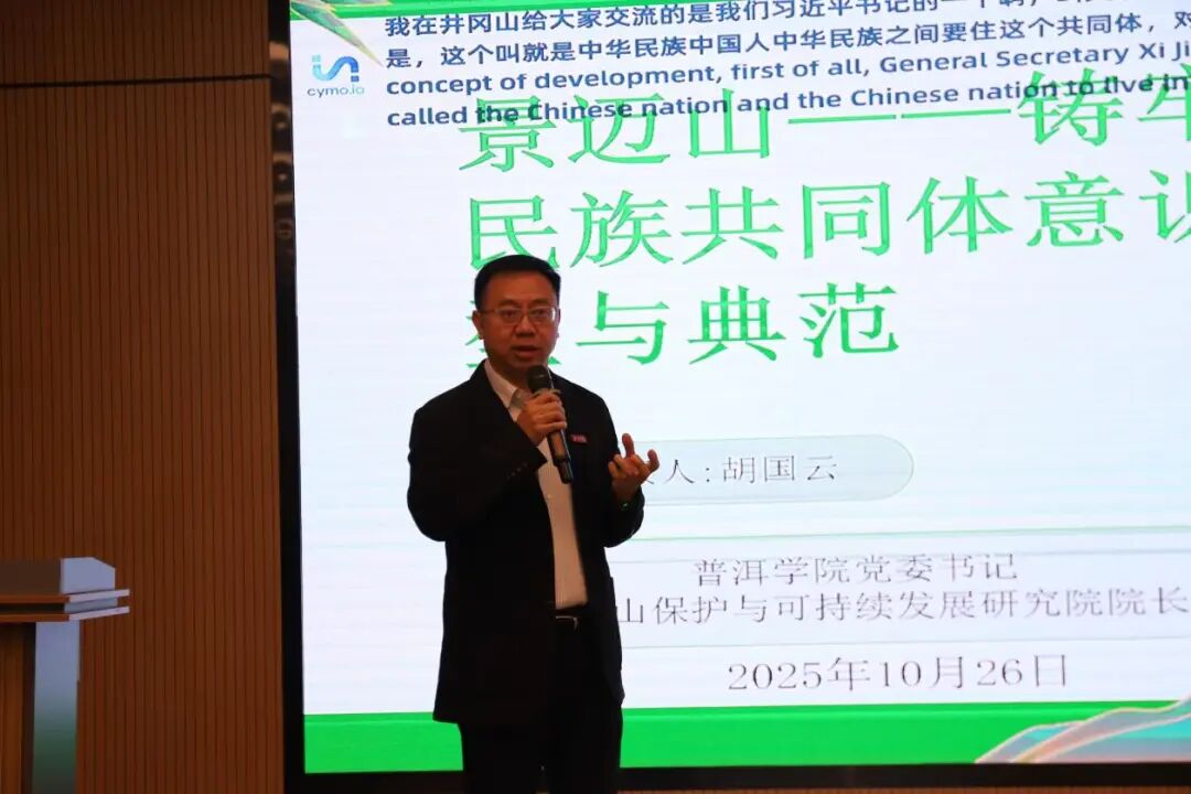 胡国云以“景迈山铸牢中华民族共同体意识的典型与典范”为题,介绍景迈山经过历史迁徙形成多民族共生格局,在宗教信仰节庆共享、生产技艺互鉴中实现文化交融。认为景迈山立体生态圈系统、古茶林保护条例及“党支部+合作社+民族户”模式,是生态保护与共同发展的生动实践,普洱“宾弄赛嗨”互帮互助机制与景迈山茶旅融合模式,印证了铸牢中华民族共同体意识“在共生中形成、在共享中巩固”的历史逻辑。