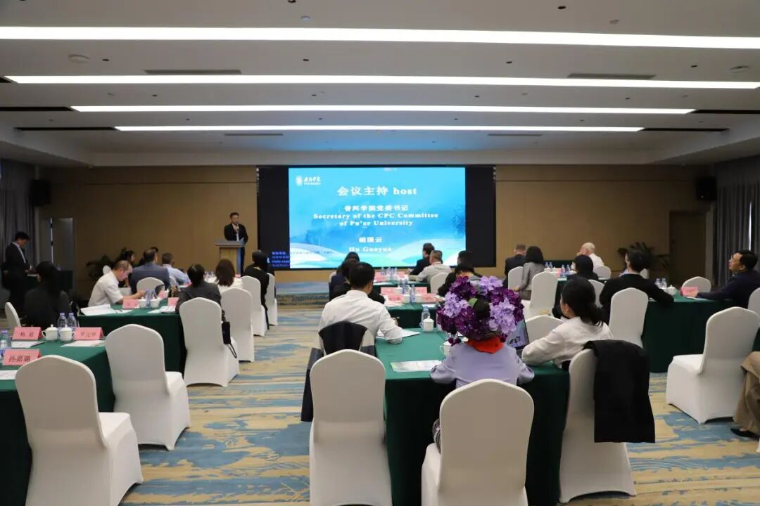 会议共分三个阶段进行,普洱学院党委书记胡国云主持第一阶段并作主旨发言,院长杨斌致辞;9位中外嘉宾从文化共生、生态经济、教育改革等维度展开深入探讨。