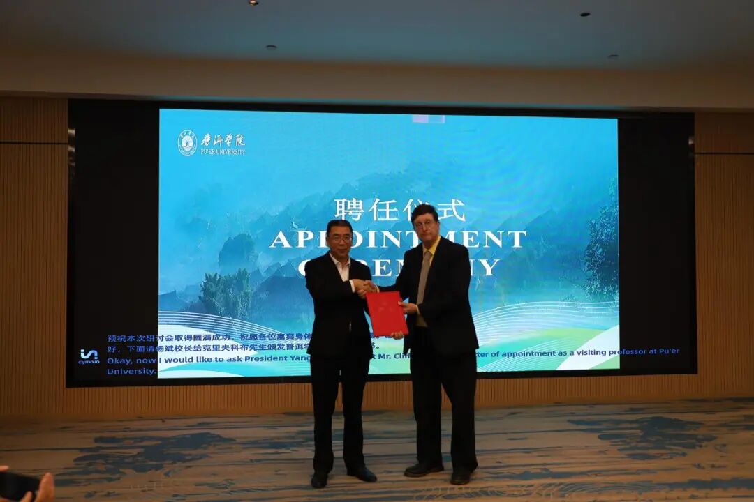 研讨会上,播放了《识·景迈山——人与自然生命共同体的典范》宣传视频;杨斌为克里福·柯布颁发了聘书。