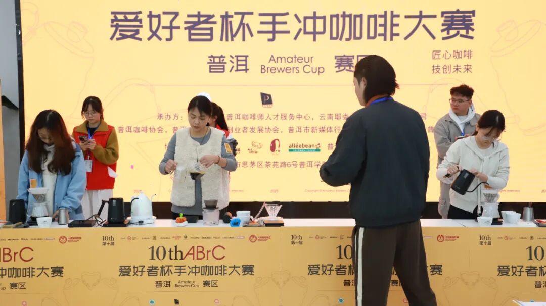 上午普洱学院的双创集市与咖啡学习工厂内处处洋溢着浓郁的咖啡香气,活动内容精彩纷呈,气氛热烈。在ABrC咖啡爱好者手冲比赛现场,参赛选手们凭借精湛的技艺和专注的态度,充分展现了手冲咖啡的艺术魅力,每一杯咖啡都凝聚着选手们对细节的极致追求和对风味平衡的精准把控,赢得了现场观众的阵阵赞叹。