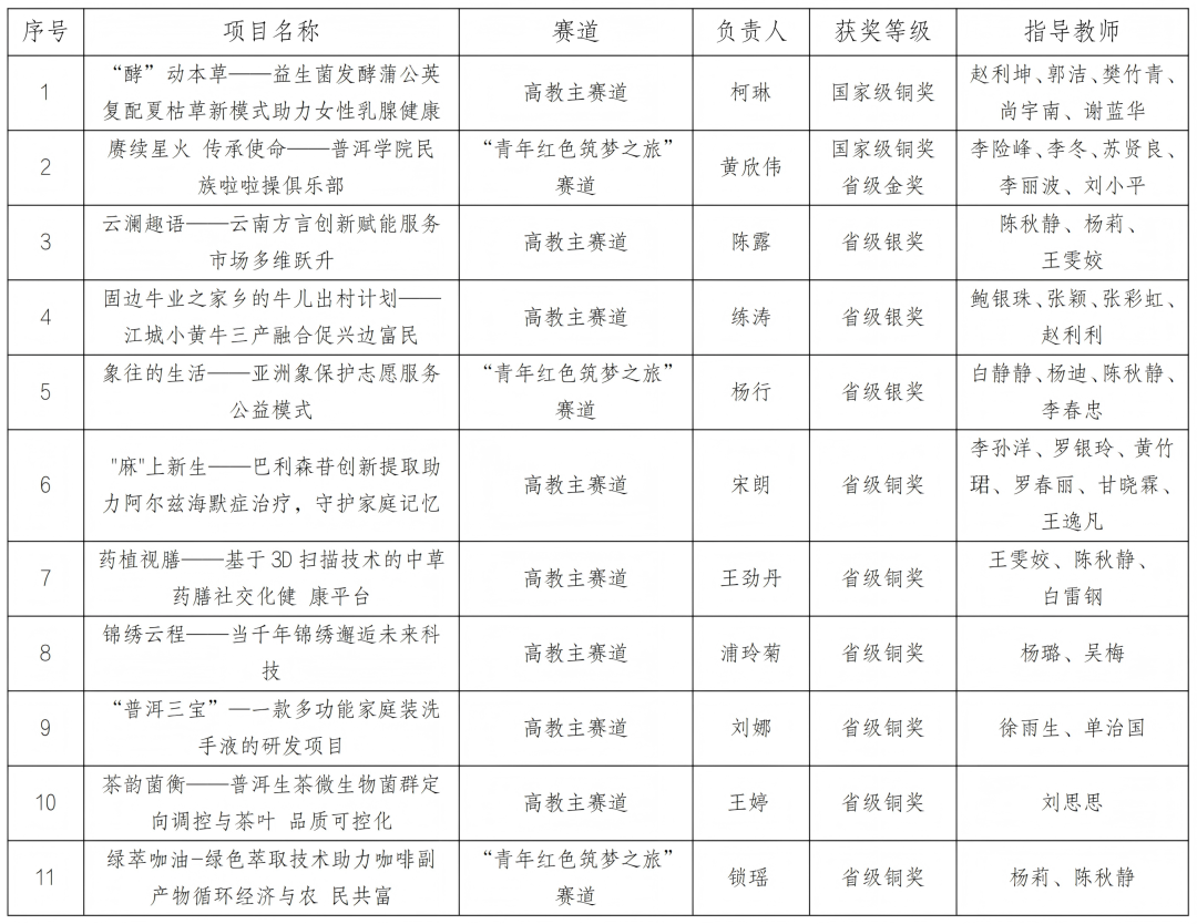 近日,中国国际大学生创新大赛(2025)成绩正式公布,普洱学院学生团队凭借扎实的专业素养与突出的创新能力,在本届大赛中斩获国家级铜奖2项,省级金奖1项,省级银奖3项,省级铜奖6项。学校实现了在该赛事中的新突破,彰显了创新创业教育的丰硕成果。