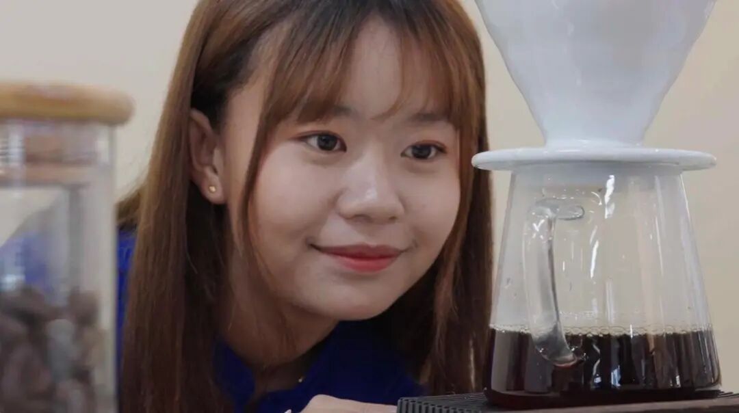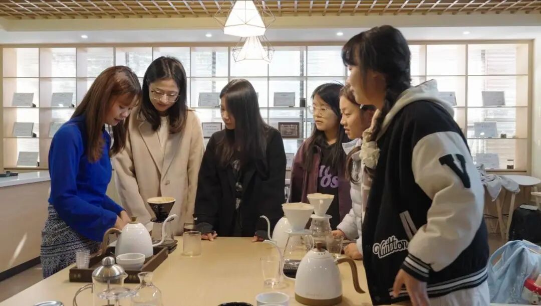 当普洱学院的朋友们走进这温馨场景,邻里的故事也就此展开。好友一起练习手冲,共同传递温热的分享杯,让异国的醇厚滋味在舌尖蔓延。张美紫眼中闪着期待的光,缅甸家乡的咖啡,有着土地赠予的深沉厚重,此刻正与普洱的友谊在杯中交融碰撞,无声诉说山川异域的同频共振。